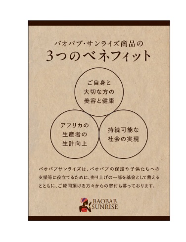 バオバブ・サンライズでは、大自然溢れるアフリカのマラウィ共和国とジンバブエ共和国から、天然のバオバブオイルとバオバブ果実パウダーを独自のルートで直輸入し販売しています。この「生命の木」から生まれた商品をご紹介しています。