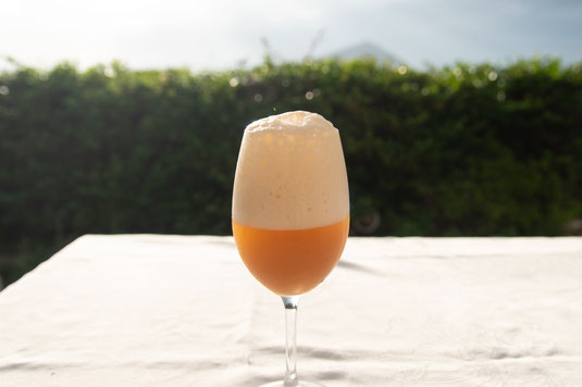 5.発酵バオバブとソーダ水を混ぜると左の写真のような発酵バオバブドリンクができあがります。バオバブエキスがダマにになる場合には、スプーンでよく混ぜてお飲みください。